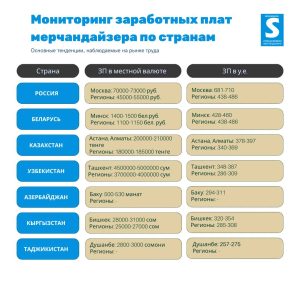 Агентство SPECSERVICE регулярно проводит мониторинг уровня заработных плат на вакансию «мерчандайзер» по странам присутствия. Делимся полученными данными от HR-отдела и основными тенденциями, которые наблюдаются среди работодателей на рынке труда.